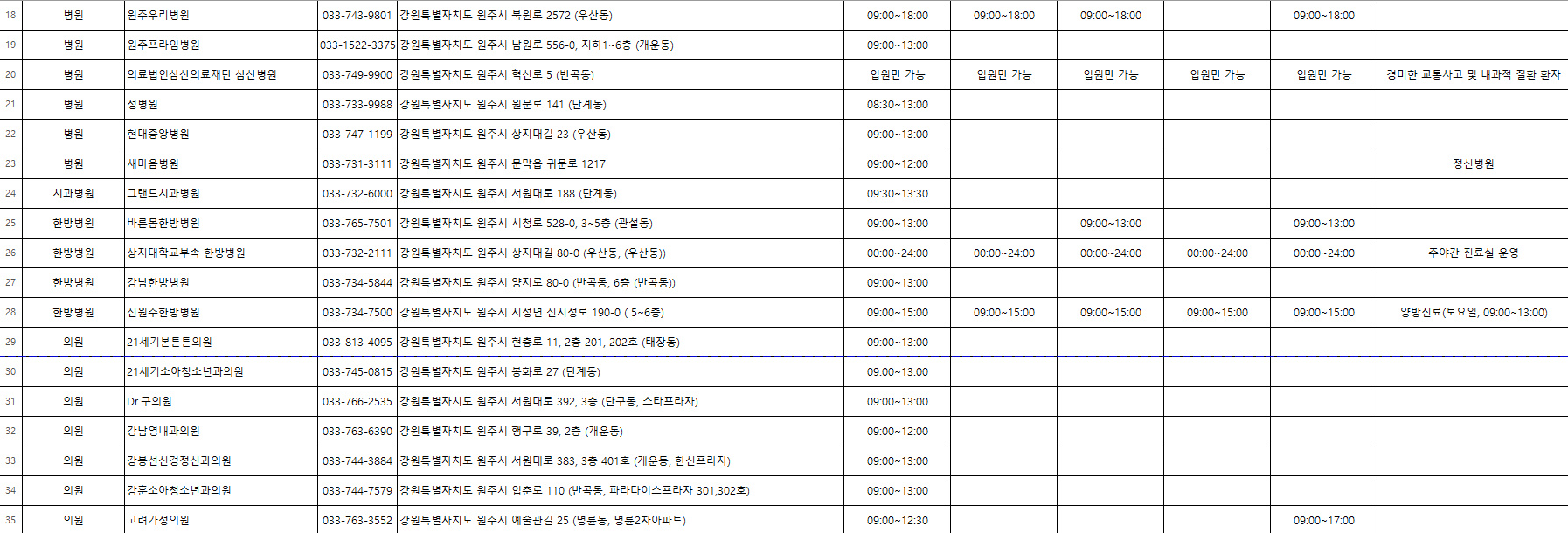 ● 원주 추석 명절 연휴 응급실